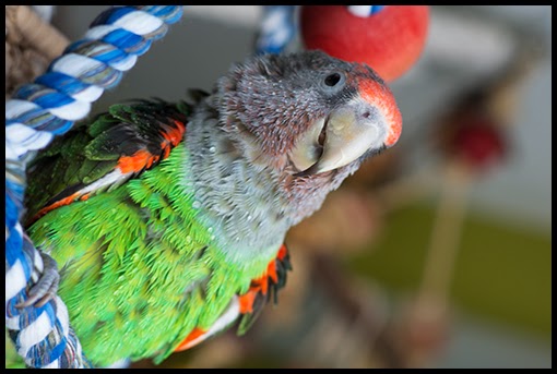 Getting a little misting. I love how she's actually showing the coral feathers on the side of her wings here!